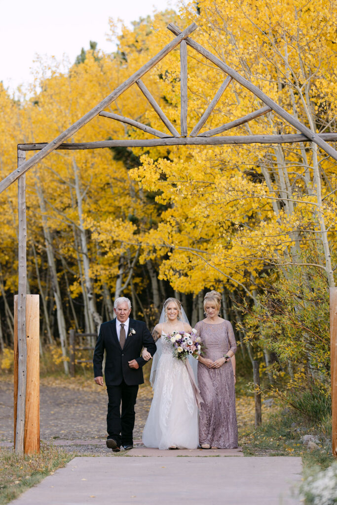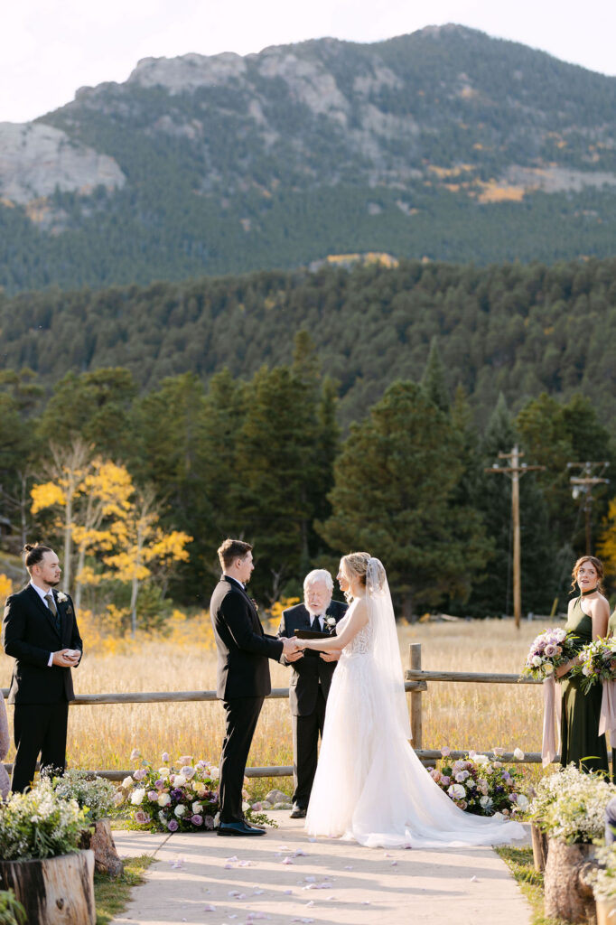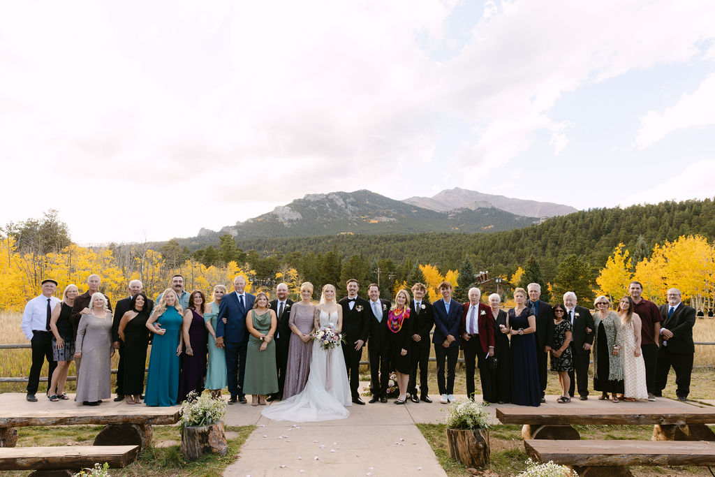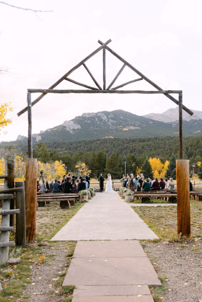 Ceremonies at Wild Basin Lodge most often take place in the open meadow, which offers expansive views of the surrounding mountains and forest. In the fall, this space becomes especially magical as the aspens turn golden, creating a backdrop that feels straight out of a Colorado postcard.